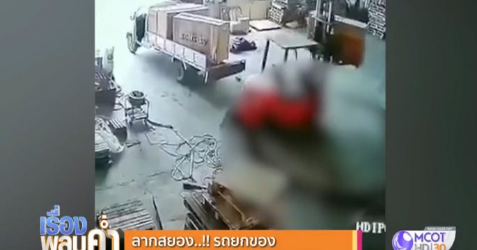 คลิปนี้เป็นเหตุการณ์ในต่างประเทศ คนงานกำลังใช้รถโฟล์คลิฟท์ หรือรถยกของ นำกล่องสินค้าขึ้นรถบรรทุก ปรากฏว่าไม่ตรงล็อก สินค้าตกลง เขารีบกระโดดลงจากรถยกของเพราะกลัวของร่วงตกพื้นเสียหาย ทำให้ถูกรถยกของซึ่งยังไม่ได้ดับเครื่องเบียดเข้าไปกับท้ายรถบรรทุก