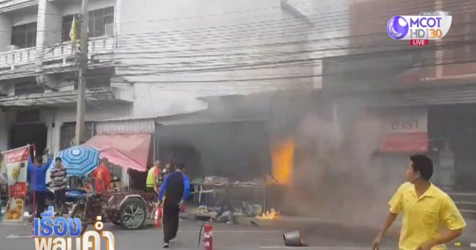 อุทาหรณ์! ไฟไหม้กระทะน้ำมันทอดกล้วยแขก ชาวบ้านวิ่งวุ่นใช้น้ำสาดกลับเป็นตัวเพิ่มให้ไฟลุกลามติดกันสาดร้านขายยาและร้านสะดวกซื้อ
