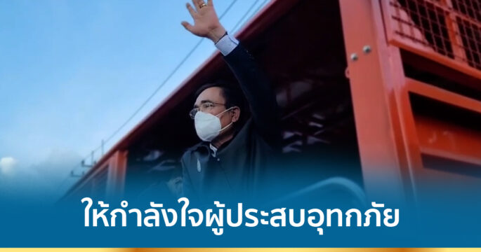 นายกฯ ลุยน้ำทักทายให้กำลังใจผู้ประสบอุทกภัย ตั้งแคมป์ข้างถนน ขอชาวบ้านเรียนรู้ปรับตัว พร้อมอุดหนุนลูกชิ้นให้ตำรวจ ถามเชิงหยอก ซื้อได้เท่าไหร่ถึงจะไม่ผิดกฎหมายเลือกตั้ง