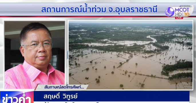 ผู้ว่าฯ อุบลราชธานี เผยภาพรวมสถานการณ์น้ำท่วมในพื้นที่ จ.อุบลราชธานี รวมถึงการเฝ้าระวังสถานการณ์น้ำในวันพรุ่งนี้