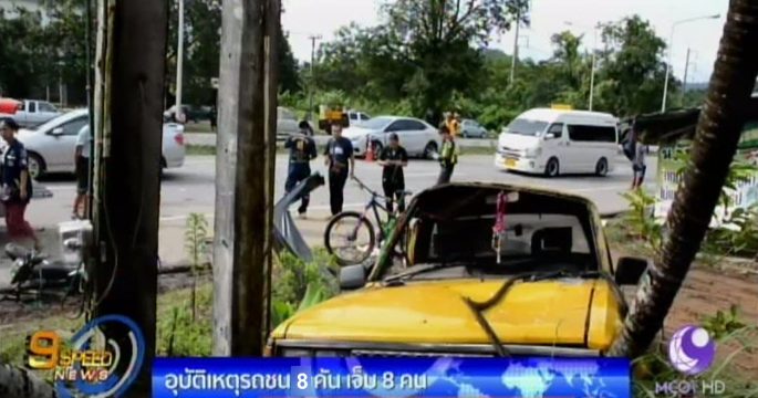 เกิดอุบัติเหตุซ้ำซ้อนชนแหลก 8 คัน บนถนนจันทบุรี-สระแก้ว รวมมีผู้บาดเจ็บ 8 ราย สาหัส 4 ราย
