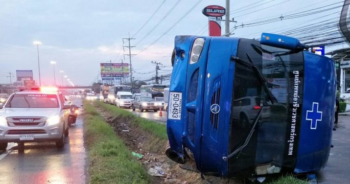 ปทุมธานี 20 พ.ย.- เกิดอุบัติเหตุ 2 ราย กลางสายฝน ถนนคลองหลวง-ปทุมธานี รถบัสศูนย์การแพทย์เสียหลักเจ็บ 5 ขณะที่รถกู้ชีพจะมาช่วยอุบัติเหตุถูกรถอีกคันชนตกร่องถนนทั้งคู่ เจ็บอีก 3 พ.ต.ท.สรายุทธ แสงทอง สว.จร.สภ.คลองหลวง จ.ปทุมธานี ประสานหน่วยกู้ชีพเทศบาลเมืองท่าโขลงและกู้ภัยเร่งช่วยเหลือผู้ประสบอุบัติเหตุรถบัสปรับอากาศของศูนย์แพทย์อาชีวเวชศาสตร์กรุงเทพ ทะเบียน 50-0493 กรุงเทพมหานคร เสียหลักบนถนนพหลโยธิน ฝั่งขาออกหลักกิโลเมตรที่ 45 + 700 ก่อนถึงนิคมอุสาหกรรมนวนคร ต.คลองหนึ่ง อ.คลองหลวง จ.ปทุมธานี เช้ามืดวันนี้ (20 พ.ย.) มีผู้บาดเจ็บ 5 ราย ขณะเดียวกันรถของหน่วยกู้ภัยเทศบาลเมืองท่าโขลงประสบอุบัติเหตุถูกรถกระบะแฉลบเข้ามาชนระหว่างทางช่วงหลักกิโลเมตรที่ 45 + 200 เป็นรถตู้ ทะเบียน กท-478 ปทุมธานี ทำให้ตกร่องกลางทั้งสองคัน และเจ้าหน้าที่กู้ชีพบาดเจ็บ 3 ราย ถูกนำส่งโรงพยาบาลธรรมศาสตร์ ศูนย์รังสิต ส่วนผู้บาดเจ็บจากอุบัติเหตุรถบัสถูกนำส่งโรงพยาบาลการุณเวชนวนคร เบื้องต้นทราบว่ารถบัสศูนย์แพทย์ฯ เดินทางมาจาก กทม. เพื่อไปตรวจราชการที่จังหวัดพระนครศรีอยุธยา […]