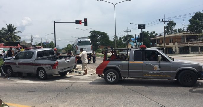 รถตู้ชนรถตำรวจกลางแยกนครศรีฯ ผกก.เจ็บ 22/05/2562 07:04 FacebookFacebookXTwitterLINELine 90 รถตู้ไม่รอสัญญาณไฟ เลี้ยวออกกลางสามแยกชนกับรถตำรวจ สภ.เมืองนครศรีฯ ทั้ง ผกก.และรอง ผกก.บาดเจ็บ