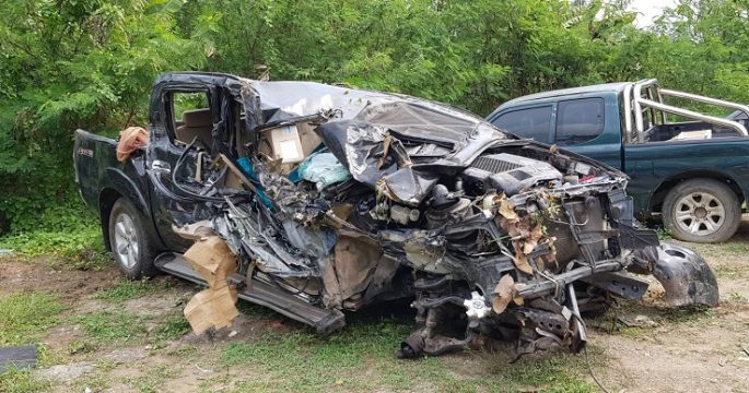 เกิดอุบัติเหตุเช้ามืด รถกระบะสีดำมุ่งหน้าสุราษฎร์ธานี ล้อยางระเบิดถนนบางสะพาน-ประจวบฯ เสียชีวิต 1 เจ็บ 7