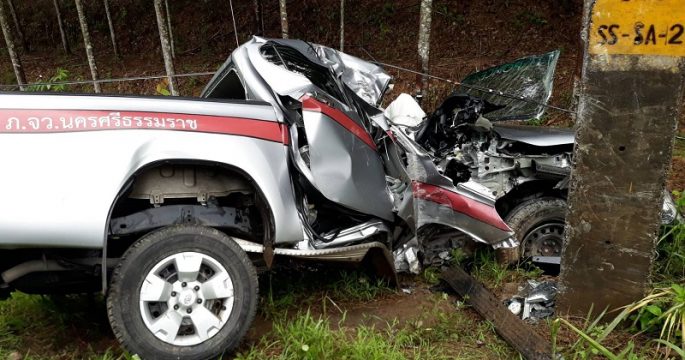เกิดอุบัติเหตุถนนสายตะกั่วทุ่ง-พังงา รถกระบะตราโล่ตำรวจนครศรีธรรมราชเสียหลักทางโค้ง รองผู้การบาดเจ็บขณะมุ่งหน้าภูเก็ตร่วมประชุมตำรวจภาค 8 ส่วนดาบตำรวจพลขับเสียชีวิต