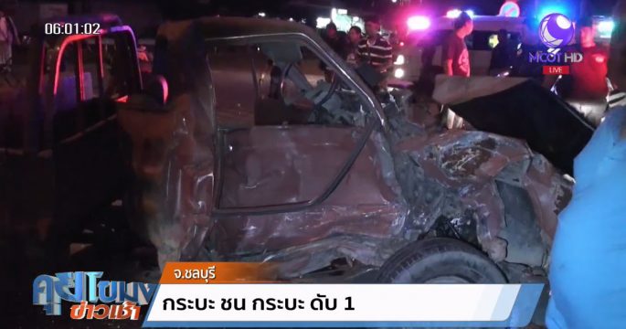 กระบะประสานงาขณะยูเทิร์น บริเวณบ้านพักไทยออยล์บางพระ หมู่ 9 ต.บางพระ อ.ศรีราชา จ.ชลบุรี บาดเจ็บสาหัส 1 ราย จนท.เร่งปั๊มหัวใจช่วยชายวัยประมาณ 55 ปี ก่อนส่งไป รพ. แต่เสียชีวิตในเวลาต่อมา