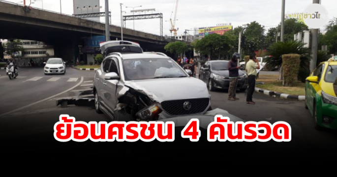เก๋งขับย้อนศร ชนระนาว 4 คันรวด รถพังยับ คนขับแท็กซี่แน่นหน้าอก คนขับอ้างคันเร่งและเบรกค้าง