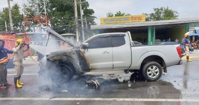 อุทัยธานี 10 ส.ค.- ตำรวจเร่งตรวจวงจรปิดหาที่มาอุบัติเหตุรถกระบะชนลาก จยย. เกิดไฟลุกไหม้กลางถนนหนองฉาง-อุทัยธานี คนขับเจ็บทั้งคู่ เมื่อเวลา 11.20 น. (10 ส.ค.) ชุดตำรวจ สภ.หนองฉาง จ.อุทัยธานี พร้อมกู้ชีพโรงพยาบาลหนองฉาง รถดับเพลิงเทศบาล และ อบต.หนองฉาง เร่งระงับเหตุไฟไหม้รถกระบะเกิดอุบัติเหตุชนกับรถจักรยานยนต์บนถนนสายหนองฉาง–อุทัยธานี ใกล้ศูนย์จราจร สภ.หนองฉางฉาง คนขับรถจักรยานยนต์ได้รับบาดเจ็บเป็นชาย อายุ 78 ปี ส่วนคู่กรณีเป็นรถกระบะ สีเทา ไฟไหม้วอดห้องเครื่องยนต์เสียหาย คนขับเป็นหญิง อายุ 39 ปี มีอาการเจ็บหน้าอกจากแรงกระแทก ทั้งสองถูกนำตัวส่งโรงพยาบาลหนองฉาง สอบถามพยานแวดล้อมให้การว่า ได้ยินเสียงรถชนกันดังมาก เมื่อหันไปดูเป็นรถกระบะชนและลากรถจักรยานยนต์ติดใต้ท้องไปจากจุดเกิดประมาณ 150 เมตร จากนั้นก็เกิดไฟลุกไหม้ ซึ่งเจ้าหน้าที่จะนำกล้องวงจรปิดบริเวณดังกล่าวมาตรวจสอบเพื่อหาสาเหตุของเหตุการณ์ที่เกิดขึ้น.-สำนักข่าวไทย