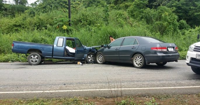 รถกระบะเบรคไม่อยู่ ชนอัดก๊อปปี้กลางลำรถเทรลเลอร์ เป็นเหตุให้คนในรถกระบะเสียชีวิตคาที่ 3 ศพ