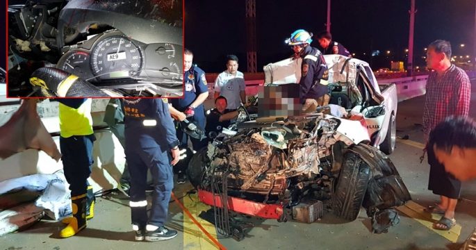 สมุทรสาคร 15 มิ.ย.-รถกระบะแต่งซิ่งพุ่งชนท้ายรถบรรทุกสิบล้อกลางสะพานข้ามแม่น้ำท่าจีน หนุ่มคนขับดับสยองคาซากรถ พยานเผยเห็นรถกระบะ 2 คันขับแข่งกันมา ก่อนรถคันหนึ่งเสียหลักพุ่งเสยท้ายรถสิบล้อ เมื่อเวลา 00.30 น.วันที่ 15 มิ.ย. พ.ต.ท.อนุรักษ์ ดีคล้าย สารวัตรสอบสวน สภ.เมืองสมุทรสาคร รับแจ้งเกิดอุบัติเหตุรถกระบะชนท้ายรถบรรทุกสิบล้อ กลางสะพานข้ามแม่น้ำท่าจีน ถ.พระราม 2 ขาออกกรุงเทพฯ หมู่ที่ 1 ต.ท่าจีน มีผู้เสียชีวิต 1 คน ตรวจสอบที่เกิดเหตุพบรถยนต์กระบะ สีขาว แต่งซิ่ง มีสติ๊กเกอร์ติดข้างรถว่า “เสี่ยมาร์คสุรินทร์ ดีเซล” หมายเลขทะเบียน 1ฒฆ-1483 กรุงเทพมหานคร สภาพหน้ารถพังยับเยิน ส่วนคนขับเป็นชายเสียชีวิตติดอยู่ภายในรถ เจ้าหน้าที่กู้ภัยต้องใช้เครื่องตัดถ่างงัดประตูนำร่างผู้เสียชีวิตออกมาได้ ทราบชื่อคือ นายพัฒนพงษ์ โพธิ์สุวรรณพร อายุ 32 ปี ที่อยู่ตามบัตรประชาชน อยู่บ้านเลขที่ 7 หมู่ที่ 11 ต.สำโรงทาบ อ.สำโรงทาบ จ.สุรินทร์ จากการตรวจสอบที่เลขไมล์วัดความเร็วของรถกระบะ […]