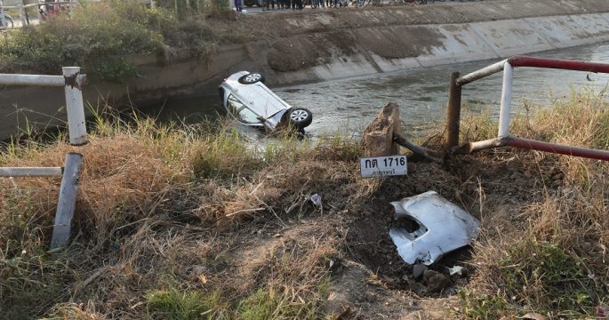 กาญจนบุรี 23 มี.ค.- เกิดเหตุรถยนต์ชนกันหลายคันกลางแยกท่ามะกา-กาญจนบุรีเช้านี้ บาดเจ็บ 7 และเสียชีวิต 2 รวมถึงคนขับเก๋งพุ่งตกคลองชลประทาน เมื่อเวลา 07.00 น. (23 มี.ค.) เกิดอุบัติเหตุรถชนกัน 4 คัน บริเวณหกแยกจามจุรี-หวายเหนียว หมู่ 1 ตำบลหวายเหนียว อำเภอท่ามะกา จังหวัดกาญจนบุรี ซึ่งเป็นทางแยกไม่มีสัญญาณไฟจราจรเลียบคลองชลประทาน ทางเจ้าหน้าที่ตำรวจ สภ.ท่ามะกา และมูลนิธิมิราเคิลออฟไลฟ์เร่งเข้าที่เกิดเหตุพบรถกระบะ สีดำ ทะเบียน ถก 6250 กรุงเทพมหานคร พลิกตะแคงอยู่กลางทางแยก มีผู้เสียชีวิต คือ นางจรี ไผ่ล้อม อายุ 34 ปี ขณะที่รถยนต์ ทะเบียน กต1716 กาญจนบุรี จมอยู่ในคลองชลประทานมีผู้เสียชีวิตติดอยู่ 1 ราย คือ นายราเชนทร์ ภู่ภักดีพันธ์ อายุ 28 ปี ส่วนคันอื่นเป็นรถยนต์ 2 […]