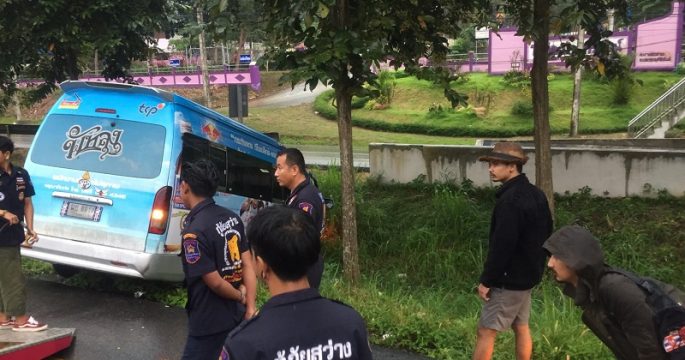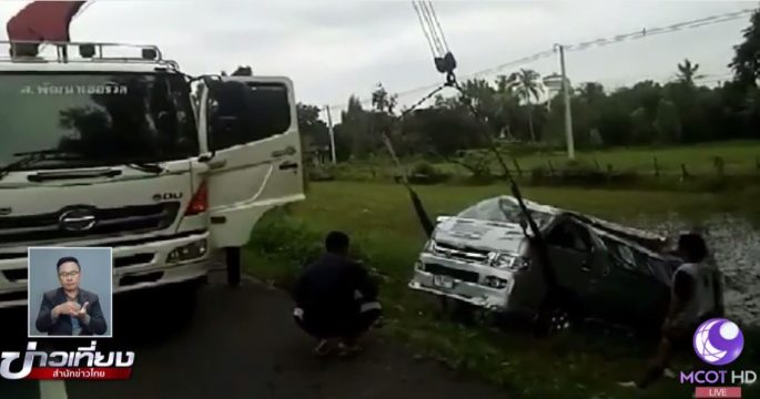 ก้มหยิบแก้วน้ำ รถตู้นักเรียนเสียหลักหวิดตกคูน้ำ เจ็บ 22 คน