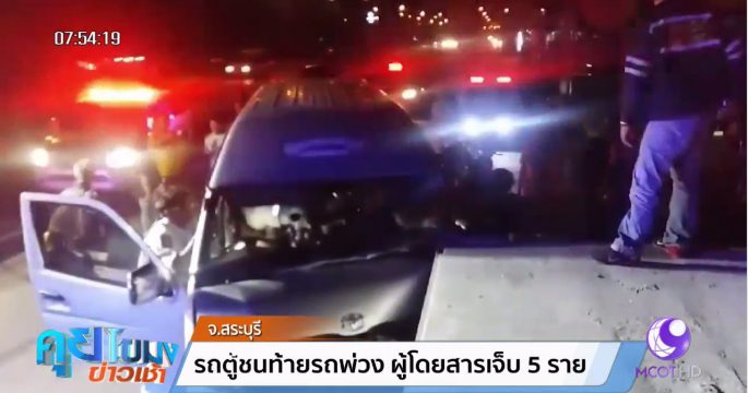 รถตู้โดยสารชนท้ายรถพ่วงบริเวณทางเข้าคู่ขนานขาเข้านครราชสีมา กม. 5 ถ.มิตรภาพ ต.ปากเพรียว อ.เมือง จ.สระบุรี ผู้โดยสารเจ็บ 5 คน
