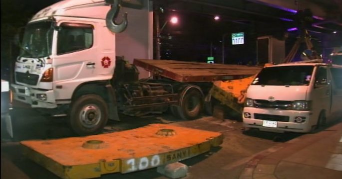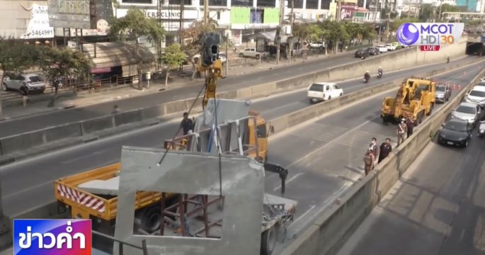 ตำรวจเตรียมเอาผิดบริษัทเจ้าของรถขนแผ่นปูน ชนสะพานลอยคนข้ามสุทธิสาร กรณีประมาททำให้รถติดบริเวณถนนรัชดาภิเษก และลาดพร้าว นานกว่า 6 ชั่วโมง ส่วนสะพานลอยคนข้าม พบรอยร้าว ต้องประสาน กทม.ตรวจเร่งด่วน