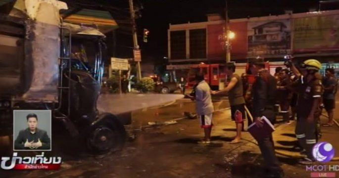 รถพ่วง 2 คันชนท้ายกันอย่างแรง กลางตัวเมืองนครปฐม จนเกิดไฟลุกท่วม คลอกคนขับเสียชีวิตคาที่ 1 คน ส่วนที่ชลบุรี ฝนตกหนัก รถบรรทุกชนท้ายรถสิบล้อ มีผู้บาดเจ็บ 1 คน