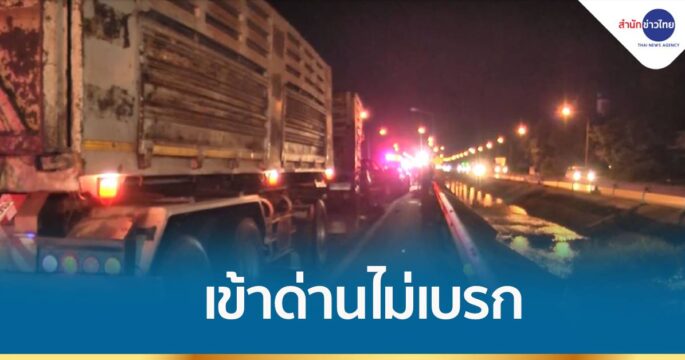 โชเฟอร์รถพ่วงเข้าด่านตรวจไม่เบรก พุ่งชน 6 คันรวด