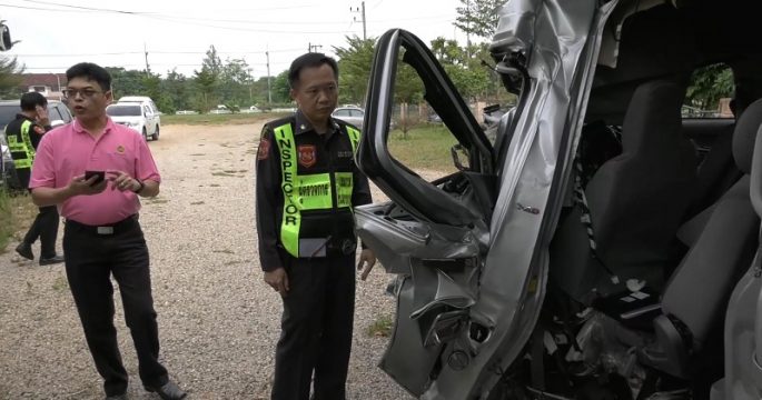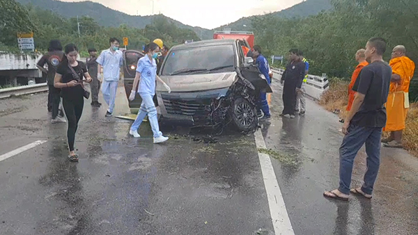 ลำปางฝนตกถนนลื่นรถตำรวจไถลข้างทางเจ็บ 3