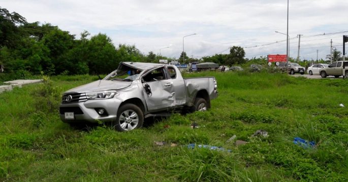 ลำปาง 24 มิ.ย.- เกิดอุบัติเหตุถนนสายเลี่ยงลำปาง รถกระบะชนกับรถเก๋งแล้วหมุนขว้างไปฟาดกับรถกระบะอีกคันที่จอดรอคนอยู่ริมทาง บาดเจ็บ 3 เมื่อเวลา 10.40 น. (24 มิ.ย.) ร.ต.ท.ชรัทดา ธัญหมอ รองสารวัตร (สอบสวน) สภ.เขลางค์นคร จ.ลำปาง ประสานสมาคมกู้ภัยลำปางเร่งช่วยเหลืออุบัติเหตุรถชนกัน 3 คัน บนถนนสายเลี่ยงเมืองลำปาง ก่อนถึงปากทางเข้าบ้านศรีหมวดเกล้า ต.ชมพู อ.เมือง มีผู้บาดเจ็บ 3 ราย เบื้องต้นทราบว่าขณะที่รถกระบะ สีบรอนซ์ทอง มาพร้อมกับญาติรวมกัน 4 คน จากจังหวัดแพร่ เพื่อมาหาร่างทรงในพื้นที่ ต.ชมพู ระหว่างจอดรถคนรู้จักเพื่อพาไปหาร่างทรง ปรากฏว่ามีอุบัติเหตุรถกระบะ สีบรอนซ์เงิน เฉี่ยวชนกับรถเก๋ง จากนั้นรถกระบะหมุนเข้ามาฟาดกับรถกระบะที่จอดอยู่อย่างแรง ทำให้มีผู้บาดเจ็บ.-สำนักข่าวไทย