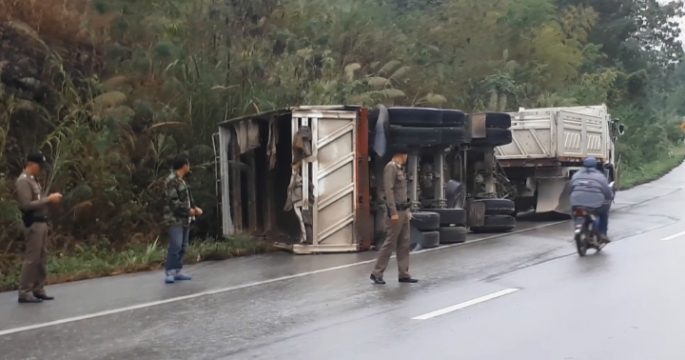 ลำปาง 12 ธ.ค.- ฝนตกฤดูหนาว เกิดอุบัติเหตุรถเสียหลัก 2 รายเช้านี้ ถนนพหลโยธิน-ลำปาง รถพ่วงแฉลบทางโค้งพลิกตะแคง คนขับปลอดภัย ส่วนอีกคันรถกระบะแล่นมาอย่างเร็วเบรกไม่ทันชนลากกรวยยาง คนขับเป็นพระอ้างไม่มีใครขับให้ ก่อนรีบบึ่งออกไป เมื่อเวลา 06.30 น. (12 ธ.ค.) เกิดอุบัติเหตุรถพ่วง 18 ล้อ เสียหลักพลิกตะแคงอยู่ริมถนนพหลโยธิน สายลำปาง-งาว-พะเยา หลักกิโลเมตรที่ 733 – 734 บ้านห้วยหลวง ม.15 ต.บ้านเสด็จ อ.เมือง จ.ลำปาง คนขับชื่อนายชวลิต ใจการ อายุ 34 ปี ไม่ได้รับบาดเจ็บ ให้การกับตำรวจ สภ.บ้านเสด็จ ว่า ขับมาจากจังหวัดพะเยามุ่งเข้าตัวเมืองลำปาง และมีฝนตกลงมาพอดี ประกอบกับเป็นทางโค้ง ทำให้ลูกพ่วงลื่นไถลก่อนพลิกตะแคงทั้งคัน เวลาต่อมาเกิดอุบัติเหตุอีกรายเป็นรถกระบะ สีขาว เมื่อมาถึงบริเวณดังกล่าว คาดว่าคงตกใจอุบัติเหตุข้างหน้าและแล่นมาด้วยความเร็ว จึงเบรกไม่ทัน รถชนกับกรวยยางและลากไประยะหนึ่งก่อนหยุดรถ เจ้าหน้าที่จึงเข้าไปช่วยเหลือปรากฏว่าคนขับเป็นพระสงฆ์ อายุ 50 ปี […]