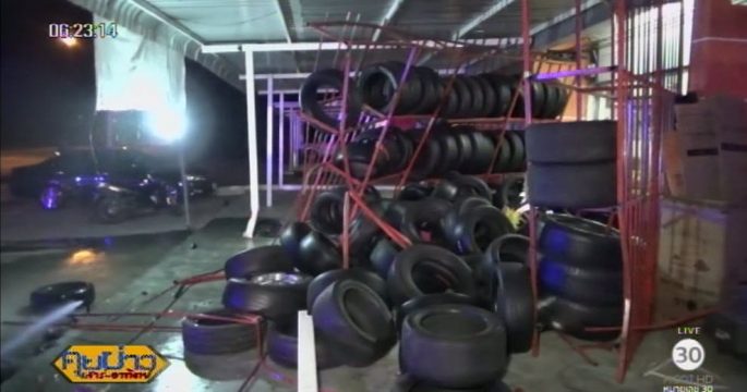 หนุ่มสาวซิ่งเก๋งเสียหลักพุ่งชนร้านล้อแม็กซ์ ริมถนนสายอ่างทอง-โพธิ์ทอง ท่อน้ำประปาแตก ยางรถยนต์ล้อแม็กซ์กระจายเกลื่อน รถกระเด็นตกข้างถนน บาดเจ็บ 3 คน