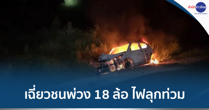 เก๋งเฉี่ยวชนพ่วง 18 ล้อ ไฟลุกท่วม คนขับดับ 1