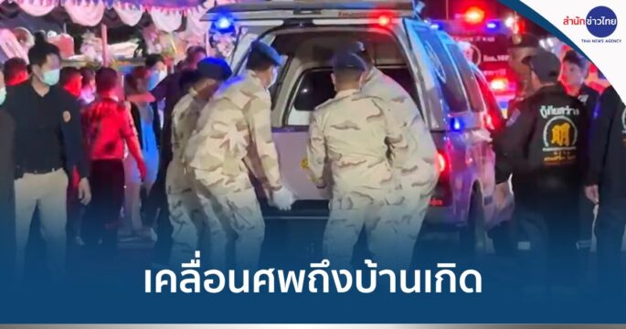 เจ้าหน้าที่กู้ภัยเคลื่อนร่างผู้เสียชีวิต 18 ราย จากเหตุรถบัสพลิกคว่ำ ถึงวัดป่าวิเวกธรรมคุณ อ.พรเจริญ จ.บึงกาฬ ท่ามกลางความโศกเศร้าเสียใจของญาติที่รอรับศพ