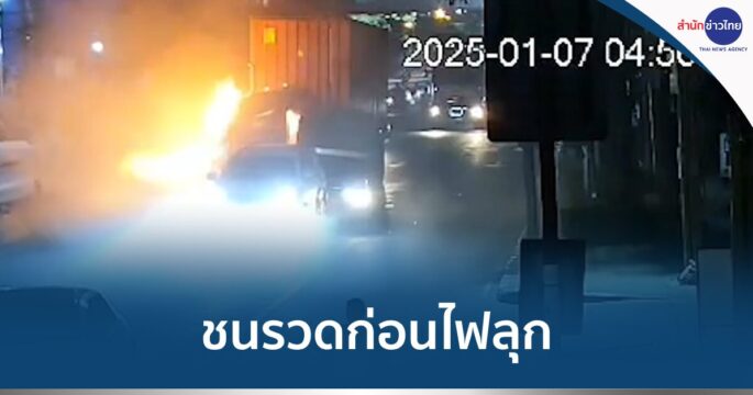 ระทึกกลางสี่แยก! พ่วง 18 ล้อ เบรกไม่อยู่ ชนท้ายรถจอดติดไฟแดง 4 คันรวด ไฟลุกท่วม คนขับกระโดดออกทางหน้าต่าง รอดหวุดหวิด