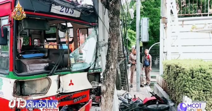 อุบัติเหตุรถเมล์ชนกระบะและจักรยานยนต์ เจ็บ 2 คน