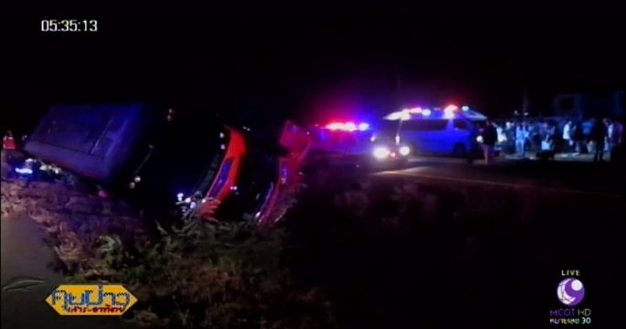 รถทัวร์พาครู-นักเรียนโรงเรียนใน จ.ขอนแก่น กลับจากทัศนศึกษาที่หาดบางแสน จ.ชลบุรี ไถลพลิกคว่ำที่ชัยภูมิ เจ็บหลายสิบ สาเหตุอยู่ระหว่างสอบสวน