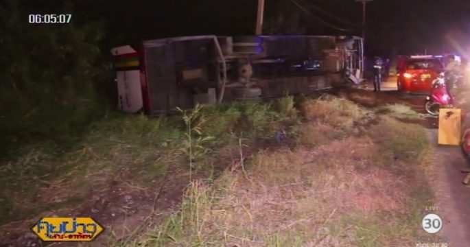 เกิดอุบัติเหตุรถทัวร์พลิกคว่ำชนต้นไม้ บริเวณถนนสายเอเชีย 41 ขาล่องใต้ ต.ประสงค์ อ.ท่าชนะ จ.สุราษฎร์ธานี ทำให้นักท่องเที่ยวชาวเนปาลบาดเจ็บ 15 คน