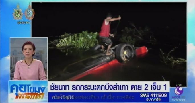 ชาย 3 คนกลับจากกินเลี้ยงวันเกิดเพื่อน ขับรถกระบะตกบึงสำเภา จ.ชัยนาท หนีออกมาได้ 1 คน ส่วนอีก 2 คน ติดอยู่ในรถเสียชีวิต