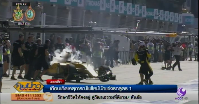 การทดสอบสนามรถแข่งขันเอฟวันที่มาเลเซีย เกิดเหตุการณ์ไม่คาดคิดเมื่อไฟลุกรถนักแข่งระหว่างนำรถเข้าพิต ไม่มีผู้บาดเจ็บหรือเสียชีวิต
