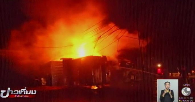 รถพ่วง 18 ล้อ บรรทุกถ่านหิน พุ่งชนรถเทรลเลอร์ กลางสี่แยกไฟแดงโคกมะลิ จ.พระนครศรีอยุธยา ส่งผลให้ไฟลุกไหม้รถทั้ง 2 คัน คนขับอาการสาหัส