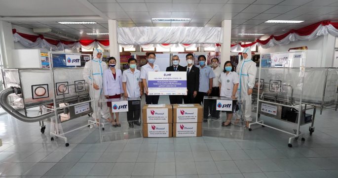 ปตท.เล็งเห็นความสำคัญการทำงานของบุคลากรทางการแพทย์ที่เป็นด่านหน้าสู้โควิด-19 โดยการสนับสนุนงบประมาณจัดซื้อวัสดุอุปกรณ์ทางการแพทย์