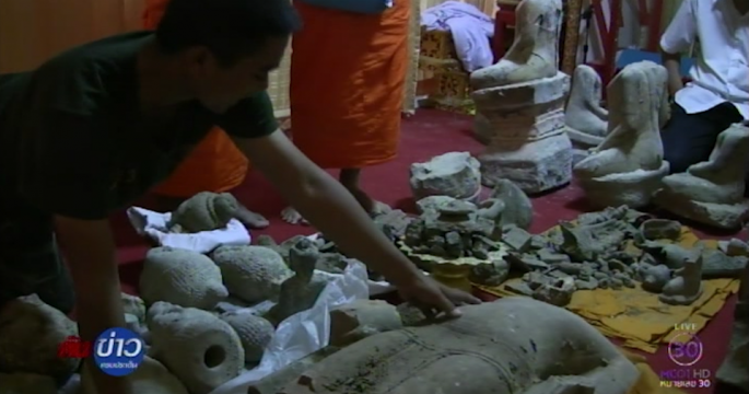พระฝันว่าวิญญาณบรรพบุรุษบอกมีพระพุทธรูปโบราณฝังอยู่ใต้ฐานพระประธานในอุโบสถวัดกลางเมืองโคราช เมื่อขุดบูรณะเจอของจริงนับร้อยชิ้น
