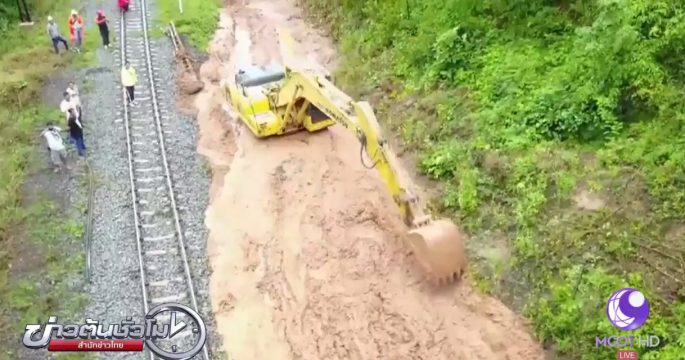เจ้าหน้าที่เร่งตักดินโคลนออกจากหน้าอุโมงค์เขาพังเหย เพื่อเปิดทางรถไฟเส้นทางบัวใหญ่-แก่งคอย หลังเกิดดินโคลนถล่มเมื่อวานนี้