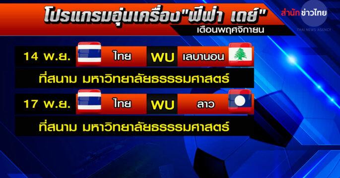 ฟุตบอลชายทีมชาติไทย ชุดใหญ่ ได้โปรแกรมอุ่นเครื่อง 2 นัด พบ เลบานอนและลาว เกมฟีฟ่าเดย์เดือน พ.ย. เพื่อเตรียมทีมลุยศึกชิงแชมป์อาเซียน