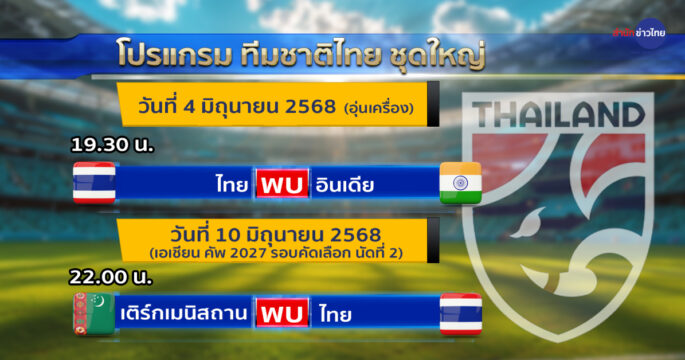 4 มิ.ย. – ทีมชาติไทย อุ่นเครื่องชนะ อินเดีย 2-0 ได้ประตูจาก “เบนจามิน เดวิส” และ “ปรเมศย์ อาจวิไล” นัดต่อไปพบ เติร์กเมนิสถาน 10 มิ.ย.นี้ ฟุตบอลอุ่นเครื่อง ตามปฏิทินฟีฟ่า เดย์ ฟุตบอลชายทีมชาติไทย อันดับ 99 ของโลก ลงสนามพบกับ อินเดีย ทีมอันดับ 127 ของโลก ที่สนาม ธรรมศาสตร์ สเตเดียม เกมนี้ มาซาทาดะ อิชิอิ หัวหน้าผู้ฝึกสอน วาง เบนจามิน เดวิส สร้างสรรค์เกมแดนกลาง โดยมีสามประสานในแดนหน้าอย่าง ชาญณรงค์ พรมศรีแก้ว, กรวิชญ์ ทะสา และ ปรเมศย์ อาจวิไล เป็นหน้าเป้า เริ่มเกมมาเพียง 8 นาที ไทย มาได้ประตูขึ้นนำ 1-0 […]
