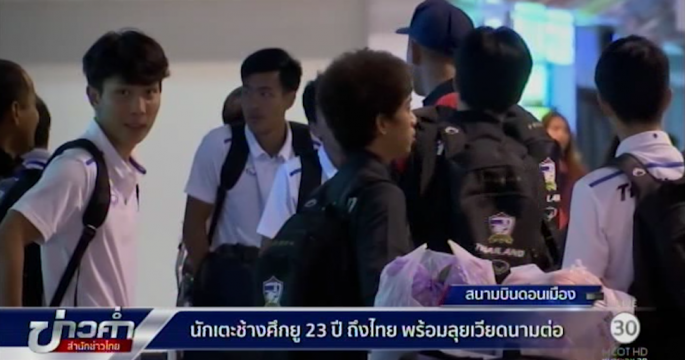 นักเตะทีมชาติไทยชุดอายุไม่เกิน 23 ปี เดินทางถึงไทย หลังไปอุ่นเครื่องกับทีมชาติจีนวานนี้ ก่อนเตรียมตัวเดินทางลุยศึกทันห์ เนียน นิวส์เปเปอร์ คัพ 2016 ที่นครโฮจิมินห์ เวียดนาม