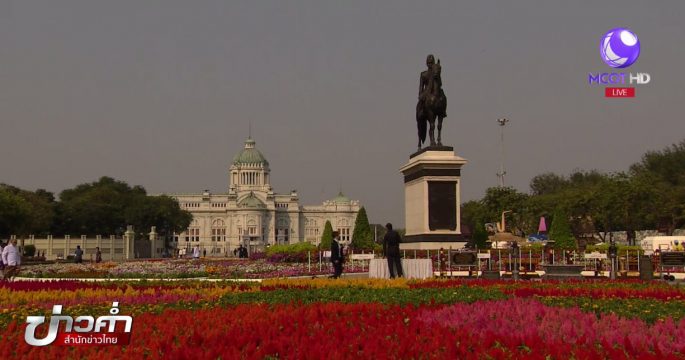 สมเด็จพระเจ้าอยู่หัวทรงพระกรุณาโปรดเกล้าฯ ให้จัดงานอุ่นไอรัก คลายความหนาว เนรมิตพระลานพระราชวังดุสิตเป็นบรรยากาศย้อนยุคท่ามกลางสวนดอกไม้