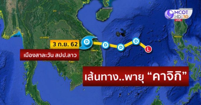 กรมอุตุฯ ประกาศฉบับที่ 9 พายุ “คาจิกิ” อ่อนกำลังลงจากพายุโซนร้อน เป็นดีเปรสชันแล้ว ศูนย์กลางอยู่ทางตอนใต้ของ สปป ลาว แต่ยังทำให้ไทยมีฝนฟ้าคะนองหลายพื้นที่ ตกหนักบางแห่ง โดยเฉพาะภาคอีสานและภาคตะวันออก มีฝนตกหนักถึงหนักมาก