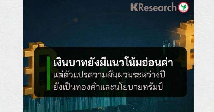 ศูนย์วิจัยกสิกรไทย วิเคราะห์ราคาทองคำตลาดโลกที่ทุบสถิติสูงสุดครั้งใหม่อาจหนุนเงินบาทในระยะสั้น แต่แนวโน้มเงินบาทปี 2568 ยังมีโอกาสอ่อนค่า จากกับความไม่แน่นอนหลายด้าน และโอกาสการปรับลดดอกเบี้ยของไทย