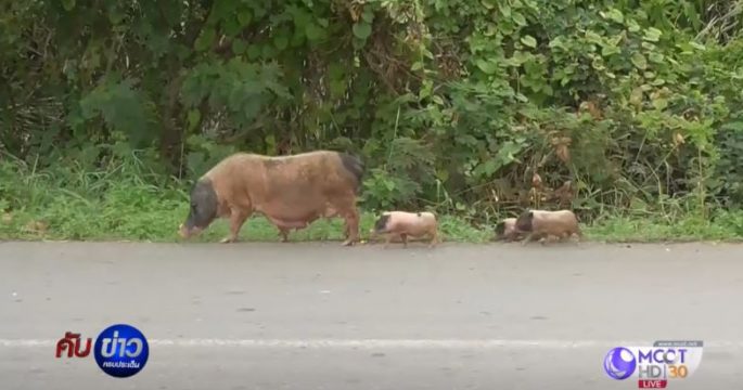 สุดน่ารัก…เจอแม่หมูพาลูกน้อย 3 ตัวหนีเที่ยว ชาวบ้านเห็นจนชินตาหวั่นถูกรถชน ขณะที่เจ้าของเผยชอบหนีเที่ยวทุกวัน