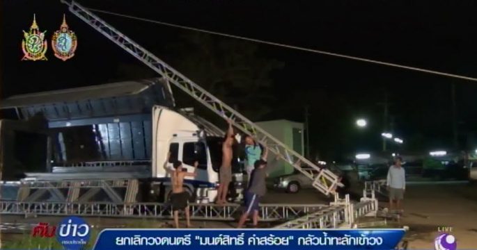 ยกเลิกกะทันหันวงดนตรีมนต์สิทธิ์ คำสร้อย งานโอทอปของดีอำเภอป่าโมก หลังน้ำเจ้าพระยาเริ่มซึมเข้ามาในพื้นที่จัดงาน