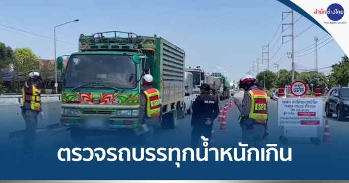 ตำรวจอ่างทองสนธิกำลัง ทั้งขนส่ง ทางหลวง และ กอ.รมน. ตั้งจุดตรวจกวดขันรถบรรทุก หลังชาวบ้านร้องเรียนทำถนนพังเสียหาย