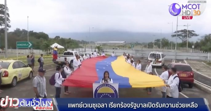 กลุ่มแพทย์ชาวเวเนซุเอลารวมตัวเรียกร้องให้รัฐบาลเปิดสะพานชายแดนที่ติดโคลอมเบีย เพื่อให้สามารถจัดส่งความช่วยเหลือด้านมนุษยธรรม
