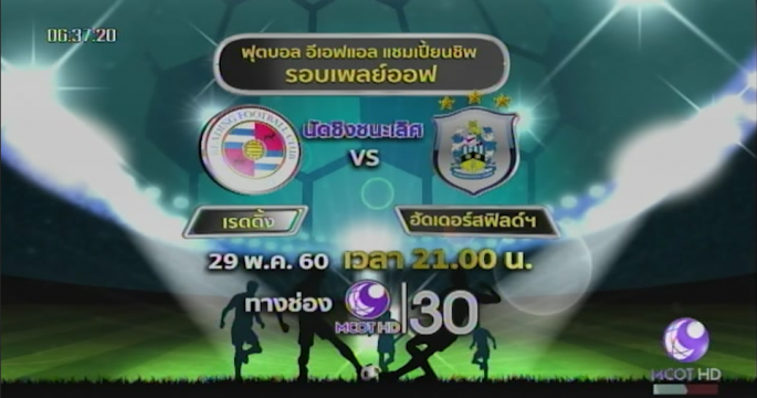 ช่อง 9 MCOT HD เตรียมถ่ายทอดสดฟุตบอลอีเอฟแอล แชมเปี้ยนส์ชิพ เพลย์ออฟ รอบชิงชนะเลิศ ระหว่าง เรดดิ้ง กับ ฮัดเดอร์สฟิลด์ ทาวน์ คืนนี้
