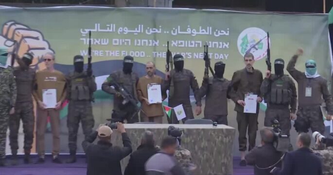 กลุ่มฮามาส ของปาเลสไตน์ส่งมอบตัวประกันชาวอิสราเอล 3 คนในวันนี้ โดยสภาพร่างกายของชายทั้ง 3 คนผ่ายผอมมาก ๆ ทำให้ชาวอิสราเอลที่ชมการถ่ายทอดทางโทรทัศน์รู้สึกตกใจไปตาม ๆ กัน