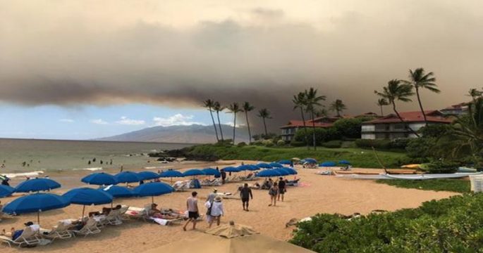 ผู้ว่าการรัฐฮาวายของสหรัฐประกาศสถานการณ์ฉุกเฉินบนเกาะเมาวีหรือเมาอีที่เกิดไฟป่าครั้งใหญ่ ต้องอพยพคนจำนวนมากและเกิดกลุ่มควันขนาดใหญ่แผ่ปกคลุมชายหาดเกาะใกล้เคียง