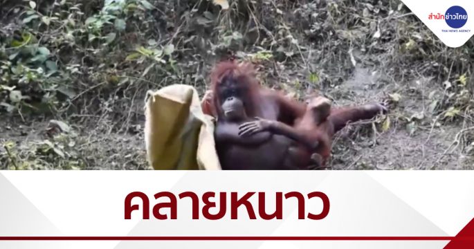 อุรังอุตังสวนสัตว์เปิดเขาเขียวห่มกระสอบ คลายหนาว